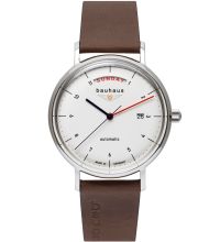 Automatik Uhrwerk, das, wie für Bauhaus Uhren üblich, eine präzise Zeitmessung garantiert und folgende Funktionen bereitstellt: Stunde, Minute, Sekunde, Datum, Wochentag.