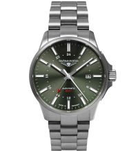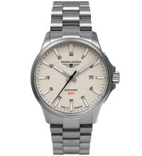 aus der Modell-Serie Aviation Automatik Titanium 42mm 10ATM. Die GMT Funktion zur Anzeige einer zweiten Zeitzone ist anhand des pfeilförmigen und farblich hervorgehobenen zweiten Stundenzeigers komfortabel ablesbar. Heimatzeit und Ortszeit behalten Sie so immer im Blick. Eine perfekte Wahl, wenn Sie einen Zeitmesser mit einem