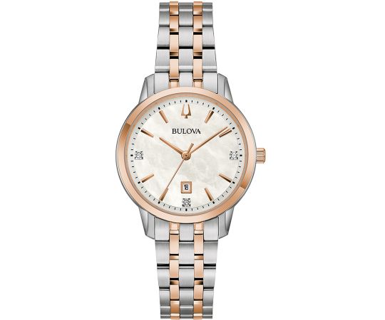 Zusätzliche Freude an Ihrer neuen Bulova Uhr wird Ihnen das hochwertig verarbeitete Armband aus Edelstahl – Farbe: Silber, Roségold – mit Schmetterlingsschließe bereiten. Das Edelstahl-Armband bietet einen hohen Tragekomfort und kann bis zu einem maximalen Handgelenkumfang von 185 mm getragen werden.