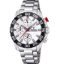 Quarz Uhrwerk (mit Batterie), das, wie für Festina Uhren üblich, eine präzise Zeitmessung garantiert und folgende Funktionen bereitstellt: Stunde, Minute, Sekunde, 24-Stunden, Chronograph.