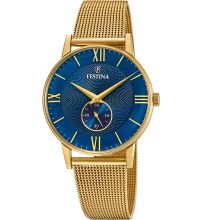 Zusätzliche Freude an Ihrer neuen Festina Uhr wird Ihnen das hochwertig verarbeitete Armband aus Edelstahl – Farbe: Gold – mit Klippschließe bereiten. Das Edelstahl-Armband bietet einen hohen Tragekomfort und kann bis zu einem maximalen Handgelenkumfang von 210 mm getragen werden.