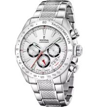 Das Herzstück dieses Zeitmessers ist ein Quarz Uhrwerk (mit Batterie), das, wie für Festina Uhren üblich, eine präzise Zeitmessung garantiert und folgende Funktionen bereitstellt: Stunde, Minute, Sekunde, Datum, Chronograph, 24-Stunden, Wochentag, Tachymeter.