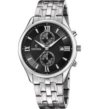 Quarz Uhrwerk (mit Batterie), das, wie für Festina Uhren üblich, eine präzise Zeitmessung garantiert und folgende Funktionen bereitstellt: Chronograph, Datum, Minute, Sekunde, Stunde.