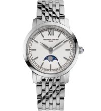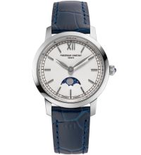Swiss MadeQuarz Uhrwerk (mit Batterie), das, wie für Frederique Constant Uhren üblich, eine präzise Zeitmessung garantiert und folgende Funktionen bereitstellt: Stunde, Minute, Mondphase.