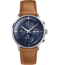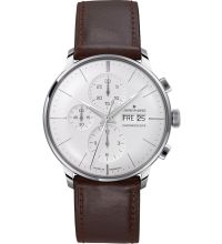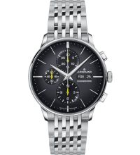 Automatik Uhrwerk, das, wie für Junghans Uhren üblich, eine präzise Zeitmessung garantiert und folgende Funktionen bereitstellt: Stunde, Minute, Sekunde, Datum, Wochentag, Chronograph, Gangreserve.