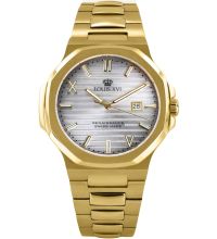 Zusätzliche Freude an Ihrer neuen Louis XVI Uhr wird Ihnen das hochwertig verarbeitete Armband aus Edelstahl – Farbe: Gold – mit Faltschließe bereiten. Das Edelstahl-Armband bietet einen hohen Tragekomfort und kann bis zu einem maximalen Handgelenkumfang von 210 mm getragen werden.