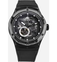 Das Runde Gehäuse ist 45 mm breit sowie 13 mm hoch und schmückt, natürlich abhängig vom individuellen Geschmack, nahezu jedes Handgelenk. Vom Gehäuse hebt sich die Feststehende Lünette dezent ab. Beim Gehäuseboden der Uhr handelt es sich um einen Glasboden, verschraubt, der den Schlusspunkt für ein ansprechendes Design setzt.