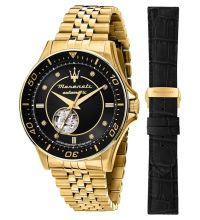 Zusätzliche Freude an Ihrer neuen Maserati Uhr wird Ihnen das hochwertig verarbeitete Armband aus Edelstahl – Farbe: Gold – mit Faltschließe bereiten. Das Edelstahl-Armband bietet einen hohen Tragekomfort und kann bis zu einem maximalen Handgelenkumfang von 220 mm getragen werden.