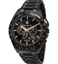 Quarz Uhrwerk (mit Batterie), das, wie für Maserati Uhren üblich, eine präzise Zeitmessung garantiert und folgende Funktionen bereitstellt: Stunde, Minute, Sekunde, 24-Stunden, Chronograph, Datum.