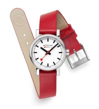 Zusätzliche Freude an Ihrer neuen Mondaine Uhr wird Ihnen das hochwertig verarbeitete Armband aus veganes Leder – Farbe: Rot – mit Dornschließe bereiten. Das veganes Leder-Armband bietet einen hohen Tragekomfort und kann bis zu einem maximalen Handgelenkumfang von 180 mm getragen werden.