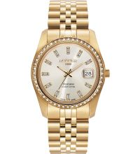 Die Armbanduhr verfügt über ein goldenes Gehäuse, aus Edelstahl gefertigt, das durch die Poliert, Mattierte Oberfläche wie ein echter Eyecatcher wirkt.