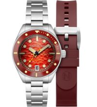 Einen weitgehenden Schutz vor unbeabsichtigten Kratzern und Blessuren bietet das Uhrenglas vom Typ "Saphirglas, gewölbt". Darunter zeigt sich das Zifferblatt Ihrer neuen Traumuhr in der Farbe Rot. Zur Beleuchtung der Spinnaker SP-5159-33 tragen Superluminova bei und ermöglichen eine gute Ablesbarkeit auch bei ungünstigen Lichtverhältnissen.