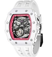 Zusätzliche Freude an Ihrer neuen Tsar Bomba Uhr wird Ihnen das hochwertig verarbeitete Armband aus Kautschuk – Farbe: Weiß – mit Dornschließe bereiten. Das Kautschuk-Armband bietet einen hohen Tragekomfort und kann bis zu einem maximalen Handgelenkumfang von mm getragen werden.