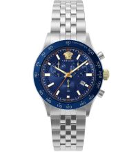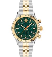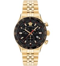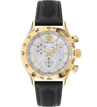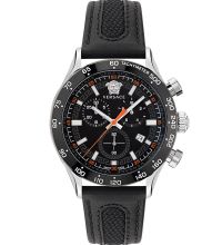 Quarz Uhrwerk (mit Batterie), das, wie für Versace Uhren üblich, eine präzise Zeitmessung garantiert und folgende Funktionen bereitstellt: Stunde, Minute, Sekunde, Datum, Chronograph.