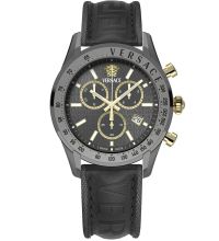 Quarz Uhrwerk (mit Batterie), das, wie für Versace Uhren üblich, eine präzise Zeitmessung garantiert und folgende Funktionen bereitstellt: Stunde, Minute, Sekunde, Datum, Chronograph, Tachymeter.
