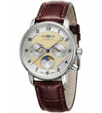 Quarz Uhrwerk (mit Batterie), das, wie für Zeppelin Uhren üblich, eine präzise Zeitmessung garantiert und folgende Funktionen bereitstellt: Datum, Minute, Mondphase, Sekunde, Stunde, Wochentag.