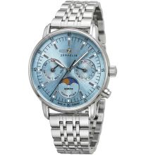 Quarz Uhrwerk (mit Batterie), das, wie für Zeppelin Uhren üblich, eine präzise Zeitmessung garantiert und folgende Funktionen bereitstellt: Datum, Minute, Mondphase, Sekunde, Stunde, Wochentag.